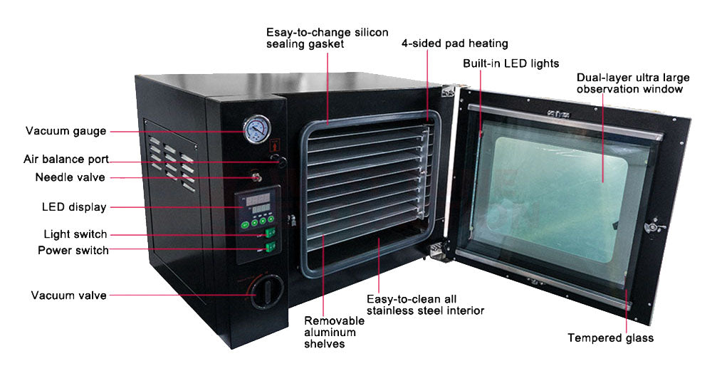 RT+ 20~150 ℉ 5 shelves 1.9cf Vacuum Oven With 10 Shelves