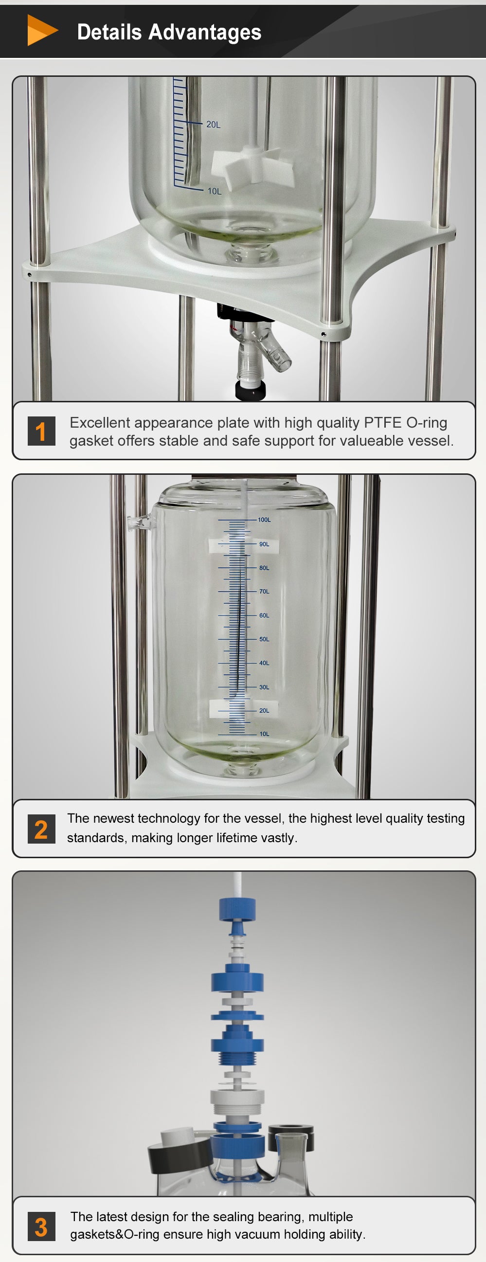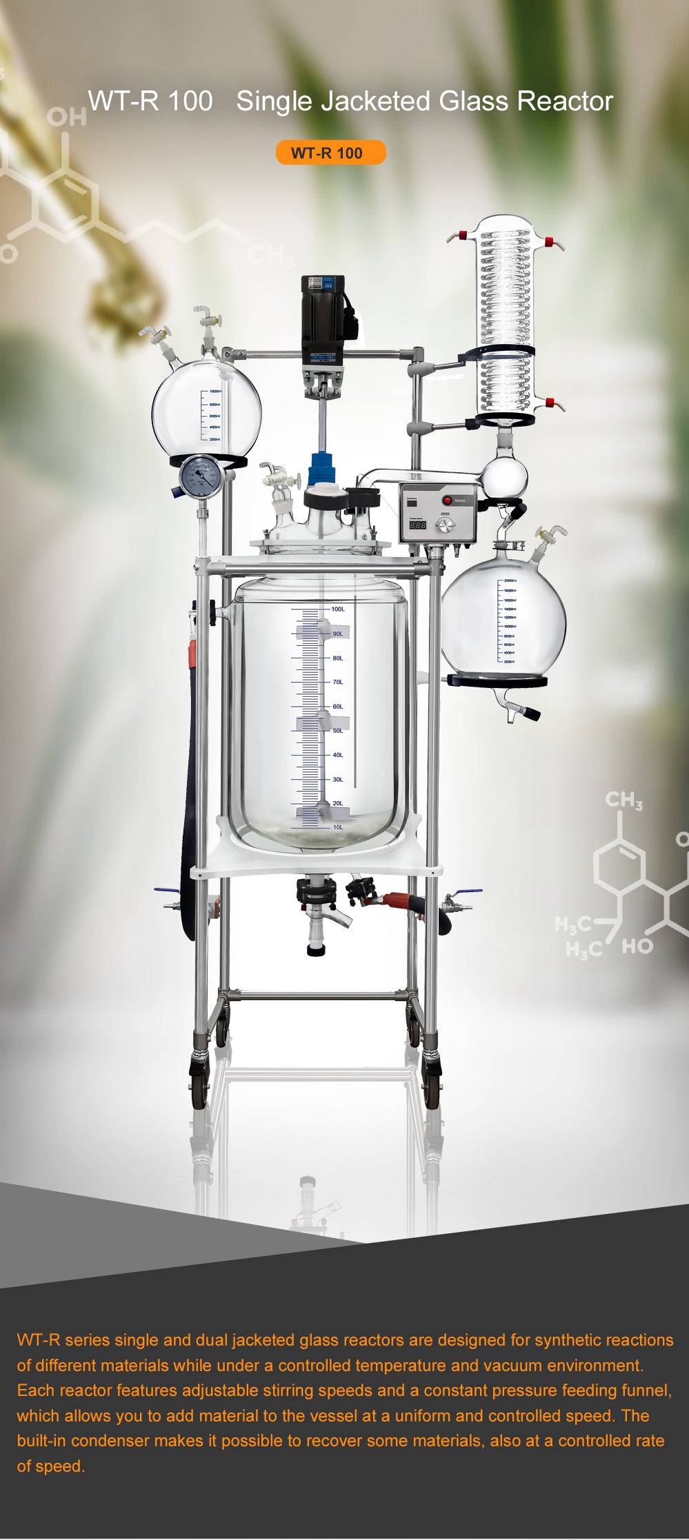 West Tune High quality WT-R 100 Glass Layer Single Jacketed Reactor For Crystallization and Reaction